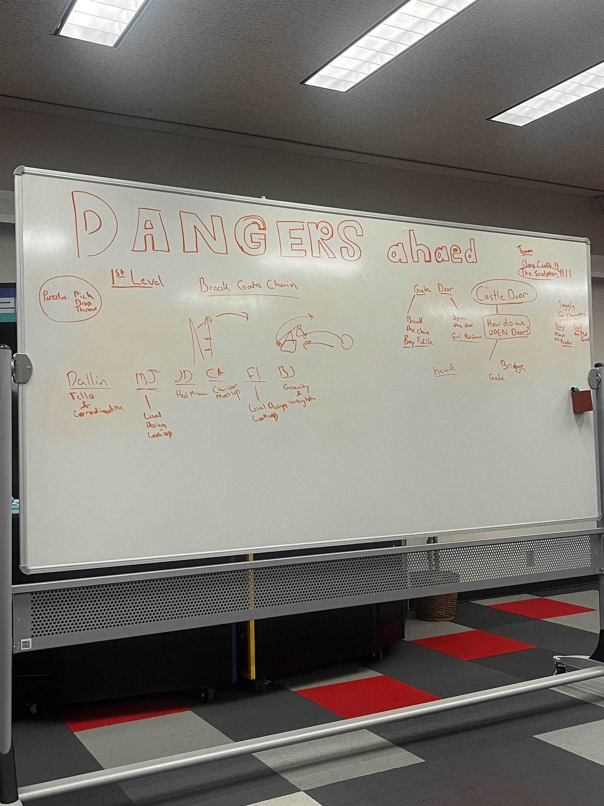 "Dangers ahead" is a 3d puzzle platformer where the player takes control of two characters with distinct movement mechanics. the clay man can run, jump, and throw his girlfriend's head. the girlfriend uses her roundness and small size to get to locations the man can't reach. Combine each character's strengths to solve puzzles, collect loess' missing body parts, and destroy the evil creature in the castle.